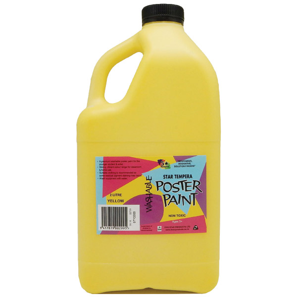 5 STAR TEMPERA POSTER PAINT WASHABLE BOTTLE 2L YELLOW