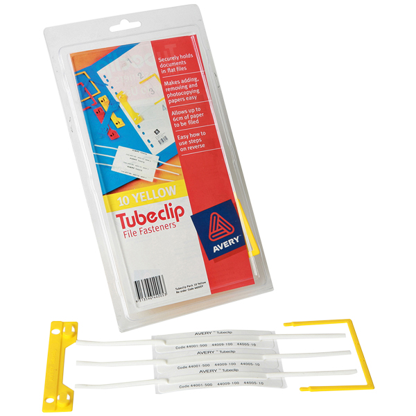 AVERY 44005Y TUBECLIP FILE FASTENERS YELLOW PACK 10