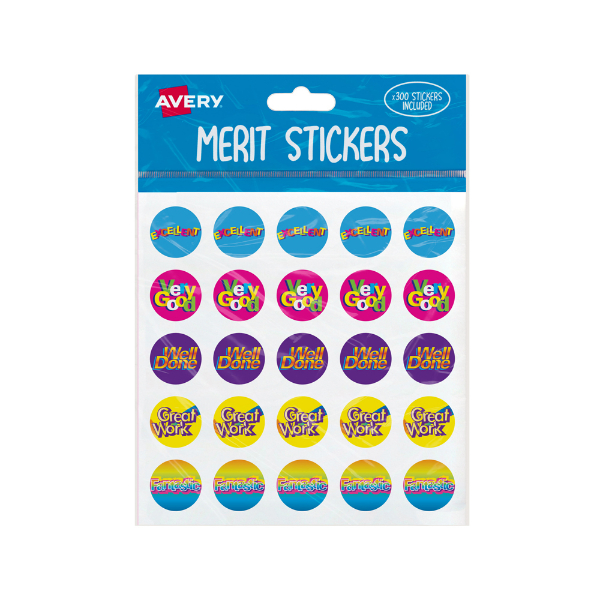 AVERY 698008 MERIT STICKERS ASSORTED CAPTIONS 2 22MM PACK 300