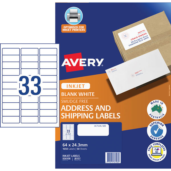 Customise your labels with our free and easy-to-use template software; Avery Design and Print - available at averyproducts.com.au/print
