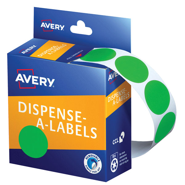 AVERY 937376 DMC24G ROUND LABEL DISPENSER 24MM GREEN BOX 500