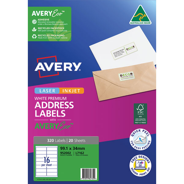 Customise your labels with our free and easy-to-use template software; Avery Design and Print - available at averyproducts.com.au/print
