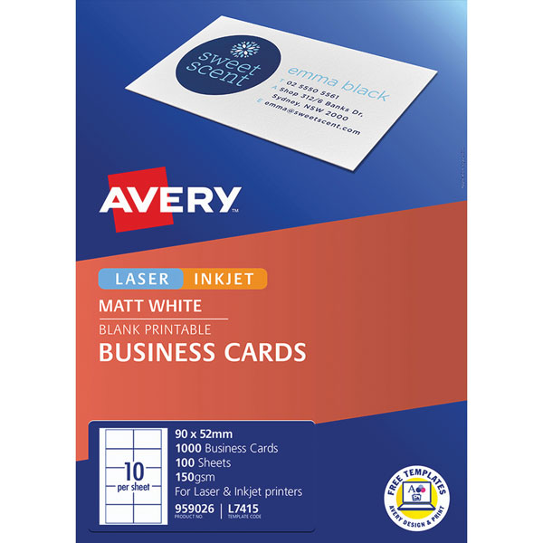 AVERY 959026 L7415 QUICK CLEAN BUSINESS CARD 150GSM 90 X 52MM WHITE PACK 1000