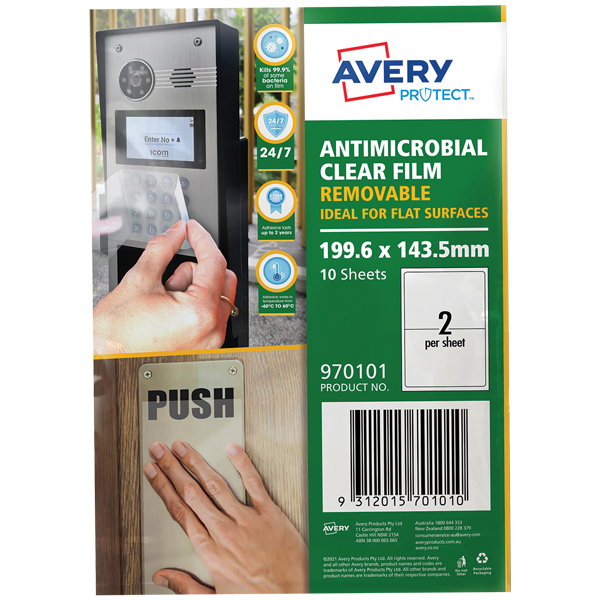 AVERY PROTECT ANTI MICROBIAL REMOVABLE FILM 2UP A4 PACK 10