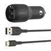 BELKIN BOOST CHARGE DUAL USB-A TO USB-C CAR CHARGER CABLE 24W BLACK