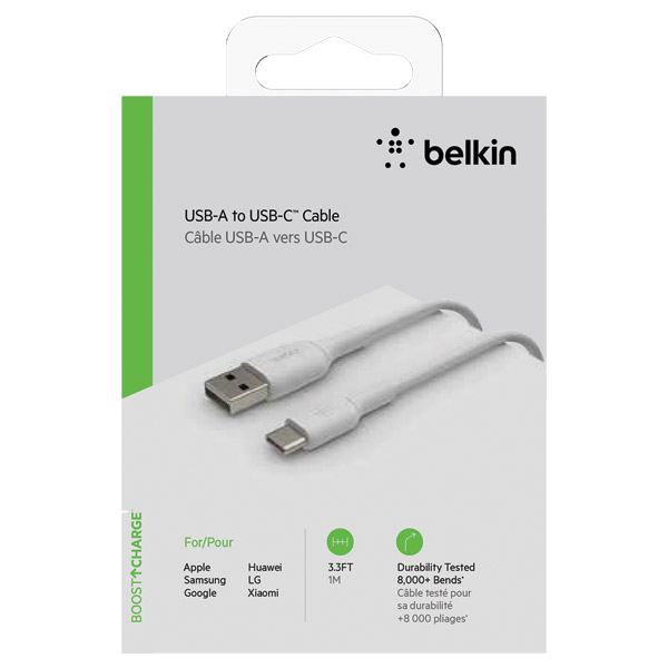 BELKIN BOOST CHARGE USB-A TO USB-C CABLE 1M WHITE