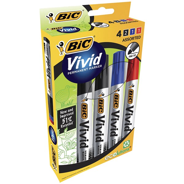 BIC ECOLUTIONS VIVID PERMANENT MARKER BULLET ASSORTED PACK 4