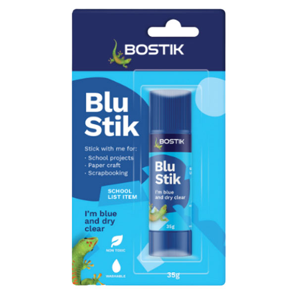 Bostik Blu Stik is a solvent free, non-toxic, easy to apply and use general purpose adhesive for the classroom and home.