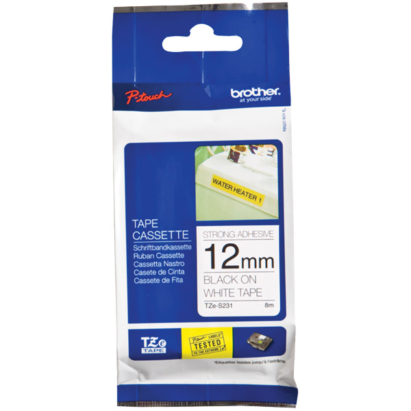 BROTHER TZE231 STRONG ADHESIVE LABELLING TAPE 12MM BLACK ON WHITE
