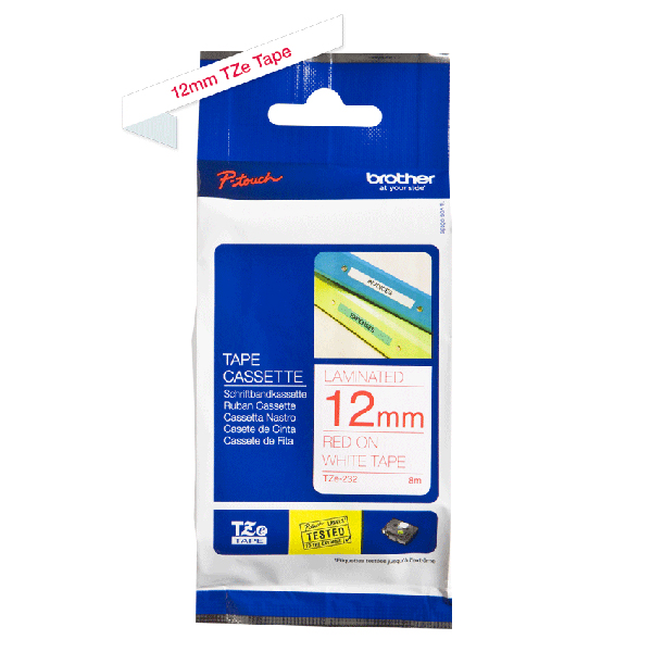 BROTHER TZE-232 LAMINATED LABELLING TAPE 12MM RED ON WHITE