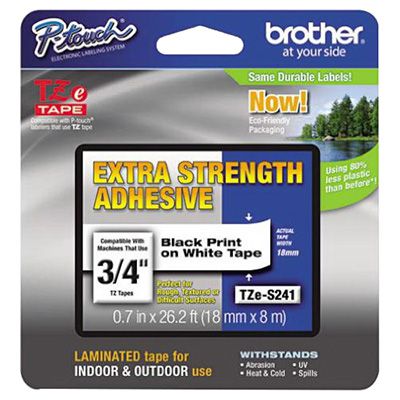 BROTHER TZE-S241 STRONG ADHESIVE LABELLING TAPE 18MM BLACK ON WHITE