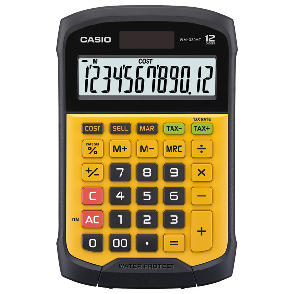 CASIO DESKTOP CALCULATOR WD320MT 12 DIGIT WATER PROTECTED/ DUST PROOF WHITE/ BLACK