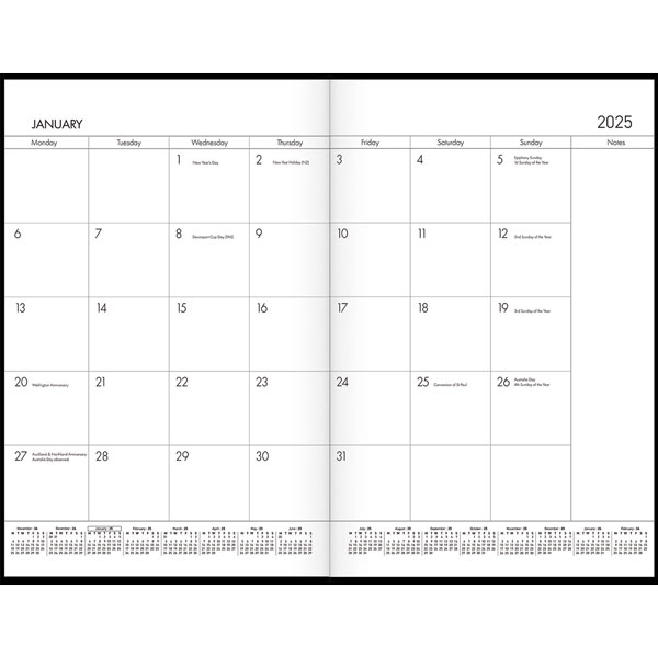 COLLINS DIARY PREMIUM MONTHLY PLANNER A4 BLACK PVC EVEN YEAR