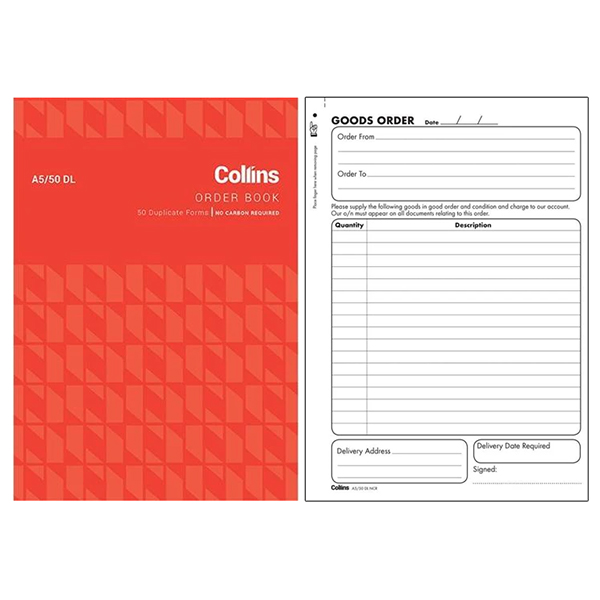 COLLINS GOODS ORDER BOOK 100 DL DUPLICATE NO CARBON REQUIRED A5 100 LEAF