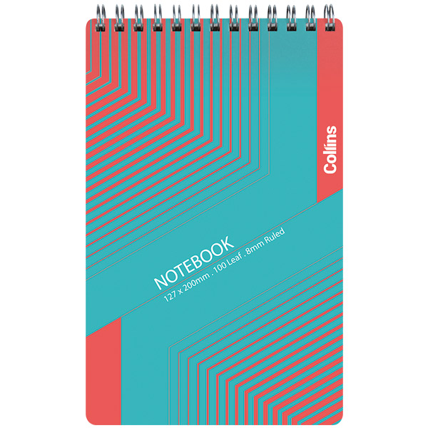 The Collins reporter notebook is top wiro bound for ease of use.