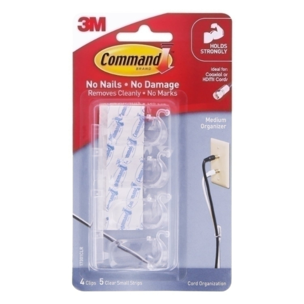 COMMAND CORD ORGANISER 3M ADHESIVE 17301 CORD CLIPS MEDIUM PKT/4