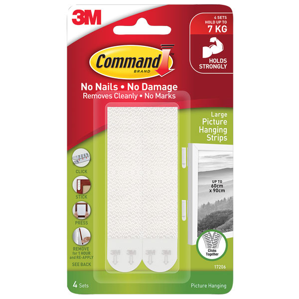 Command picture hanging strips make decorating quick and easy. One click tells you picture hanging strips are locked in and holding tight. Best of all, when you are ready to take down or move your pictures, they come off cleanly
