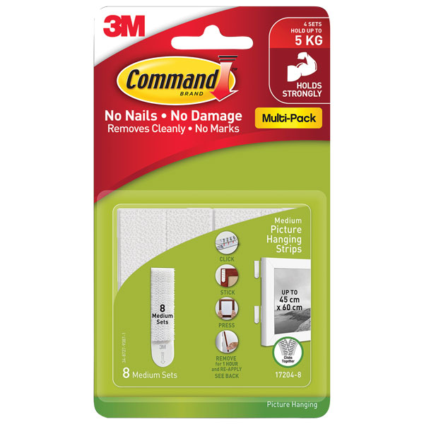 Forget about nails, screws and tacks, Command Picture Hanging Strips are fast and easy to hang – no more holes to worry about