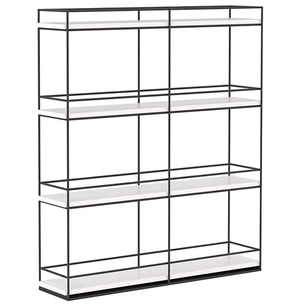 Black powder coated steel frames with Atlantic Oak melamine shelves