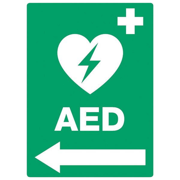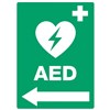 DEFIBRILLATOR AED LEFT ARROW SIGN 300 X 400MM GREEN