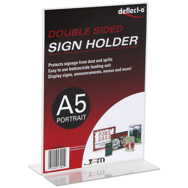 DEFLECTO SIGN HOLDER T-SHAPE DOUBLE SIDED PORTRAIT A5 CLEAR