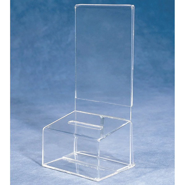 DEFLECTO SIGN HOLDER WITH COIN BOX W83 X D75 X H120MM CLEAR
