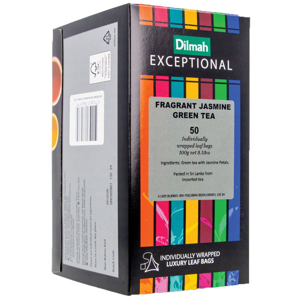 DILMAH EXCEPTIONAL TEA BAGS FRAGRANT JASMINE GREEN TEA FOIL ENVELOPED BOX 50