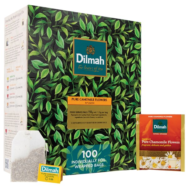 DILMAH TEA BAGS CHAMOMILE INFUSION INDIVIDUALLY FOIL ENVELOPED BOX 100