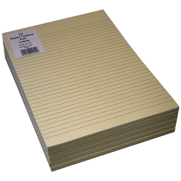 DIRECT PAPER TOPLESS PAD 7MM RULED 4A YELLOW PACK 10