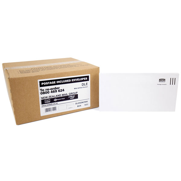 DLE E20E ENVELOPE POSTAGE INCLUDED PLAIN SELF SEAL W225 X L114MM WHITE BOX 500