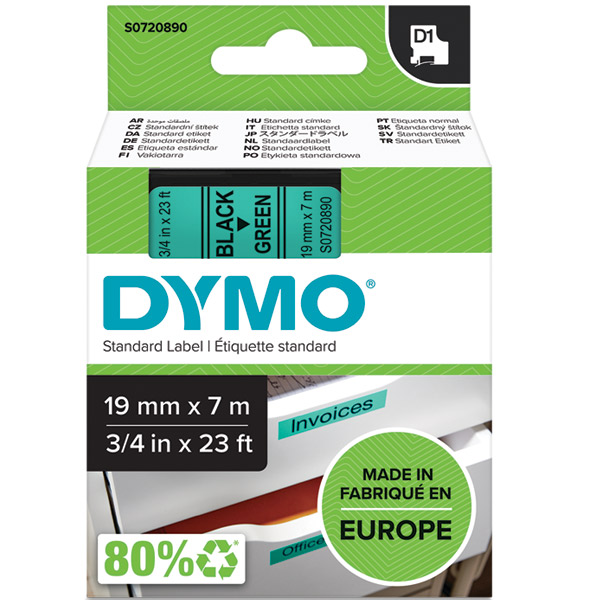 DYMO 45809 D1 LABELLING TAPE 19MM X 7M BLACK ON GREEN