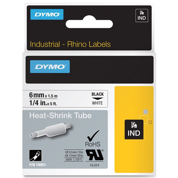 DYMO SD18051 RHINO INDUSTRIAL HEAT SHRINK TUBING 6MM BLACK ON WHITE