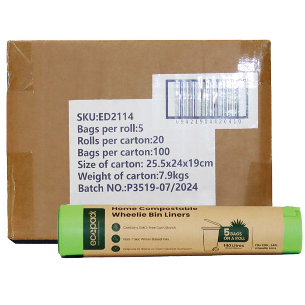 ECOPACK BIN LINERS WHEELIE BIN COMPOSTABLE 140L ROLL 5