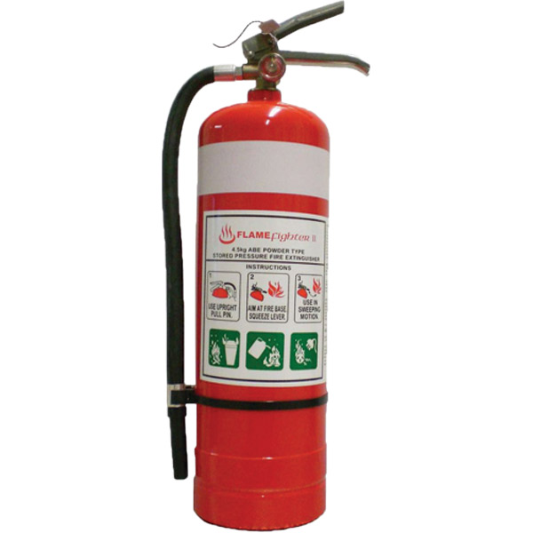 4.5kg dry powder fire extinguisher complies with AS:NZS 1841, with a fire rating of 1A:10B: E