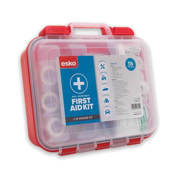 ESKO FIRST AID KIT PLASTIC WALL MOUNTABLE CASE 1-25 PERSON