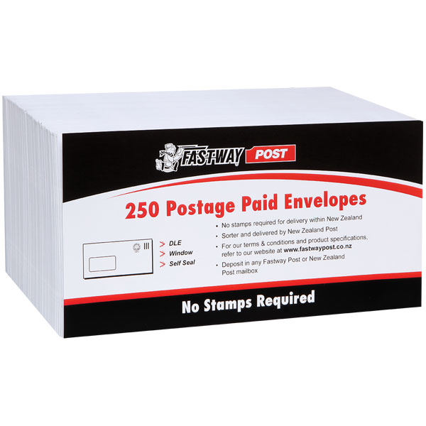 FASTWAY POST ENVELOPE POSTAGE INCLUDED WINDOW SELF SEAL 9S E13 W165 X L92MM WHITE PACK 250