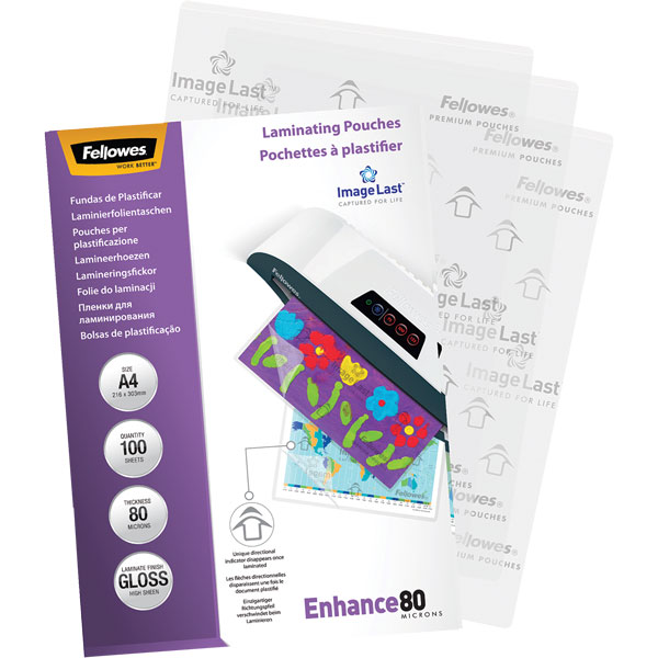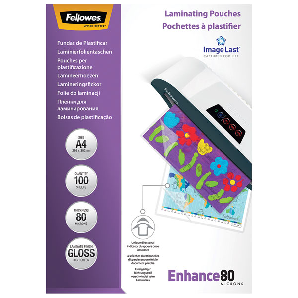 FELLOWES LAMINATING POUCH A4 80 MICRON PACK 100