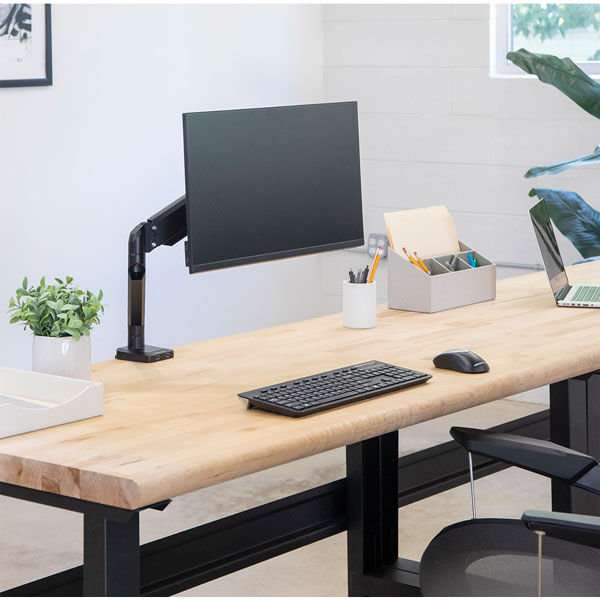 Fully independent adjustable monitor arm with innovative gas spring technology allows for effortless monitor adjustment