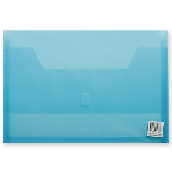 Foolscap copy safe, see-through gussetted storage wallet with hook and loop closure
