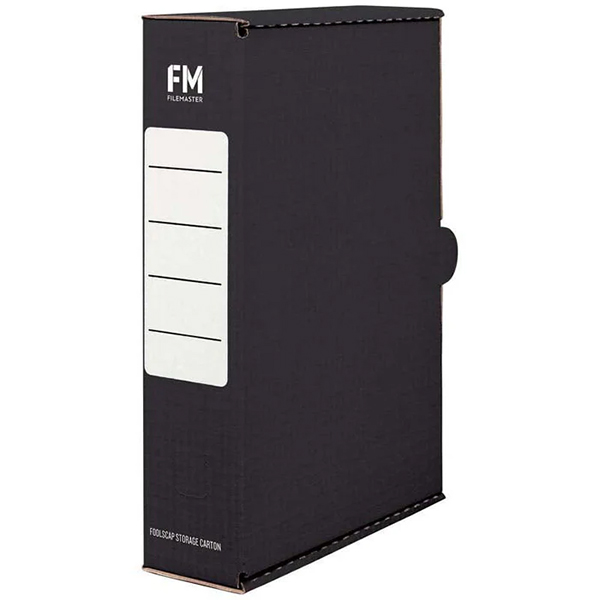 FM STORAGE CARTON FOOLSCAP W250 X H385 X D85MM BLACK