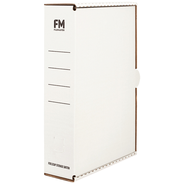 FM STORAGE CARTON FOOLSCAP W250 X H385 X D85MM WHITE