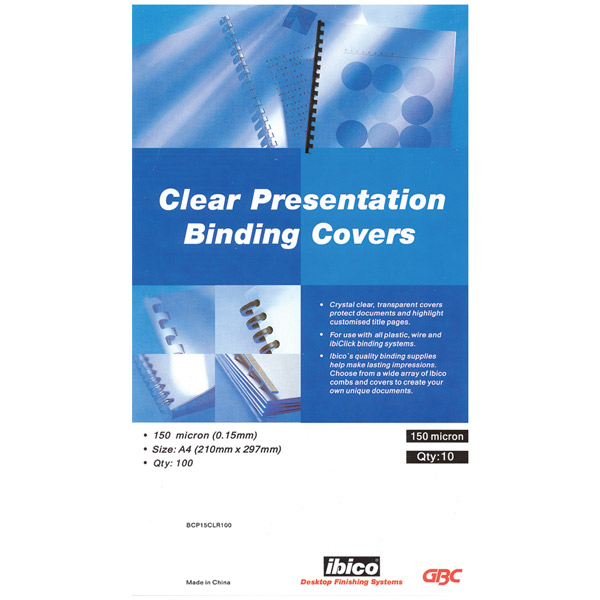 GBC IBICO BINDING COVER 150 MICRON A4 CLEAR PACK 100