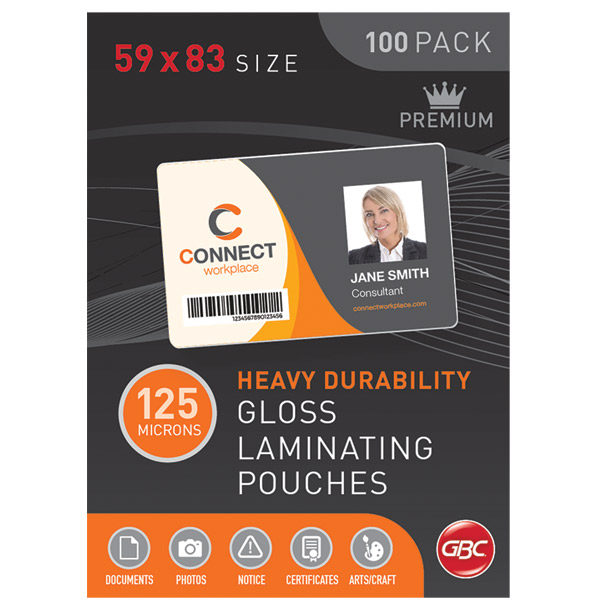 GBC LAMINATING POUCH 125 MICRON 59 X 83MM CLEAR PACK 100