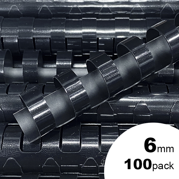 GBC PLASTIC BINDING COMB ROUND 21 LOOP 6MM A4 BLACK PACK 100