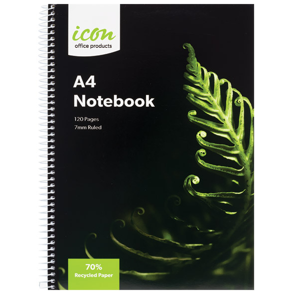 ICON SPIRAL NOTEBOOK A4 SOFT COVER 120 PAGE 70% RECYCLED