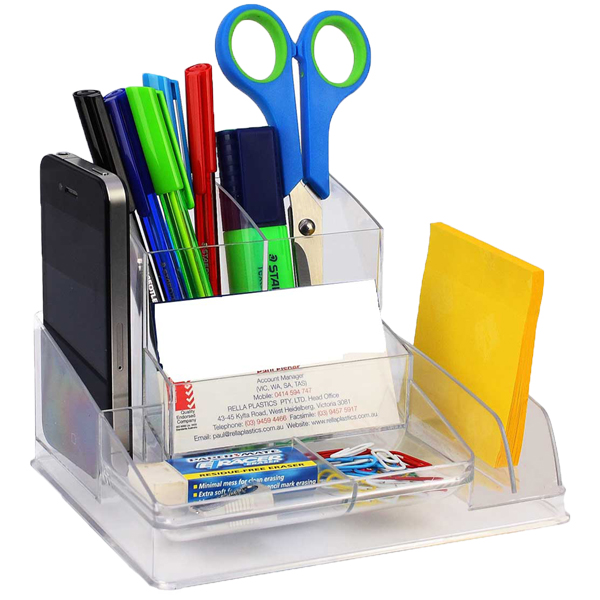 Offers versatility with desktop storage, Can store pens / pencils, rulers, scissors, paper clips, business cards, mobile phone, Post It notes, letters, CDs, etc