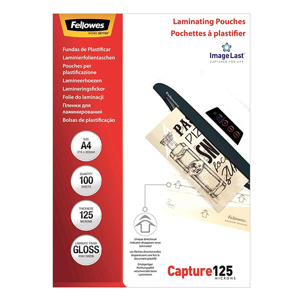 LAMINATING POUCH FELLOWES A4 125MIC PACK 100