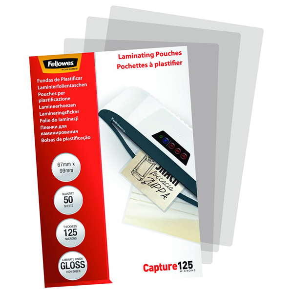 LAMINATING POUCH FELLOWES CARD 125MIC 67 X 99MM PKT/50