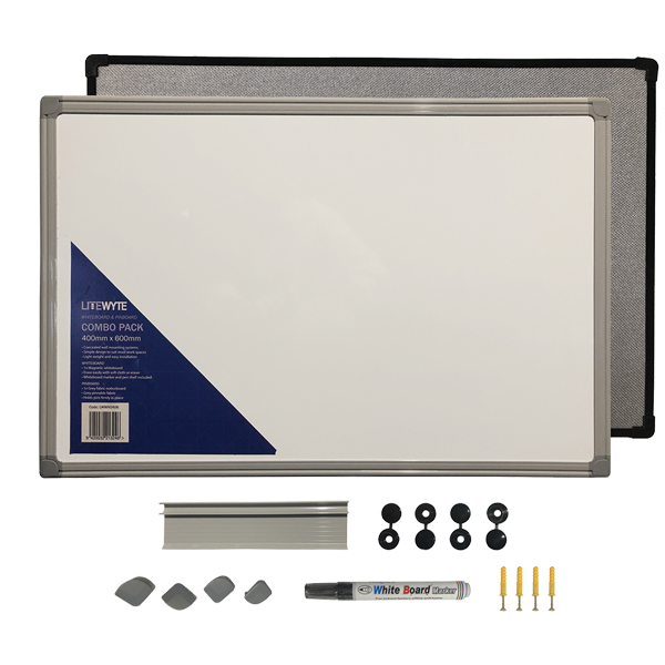 LITEWYTE MAGNETIC WHITEBOARD AND PINBOARD COMBO L600 X W400 X D60MM