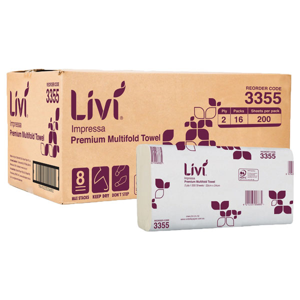 LIVI IMPRESSA SLIMFOLD PAPER TOWEL 2PLY 200 SHEET CARTON 16